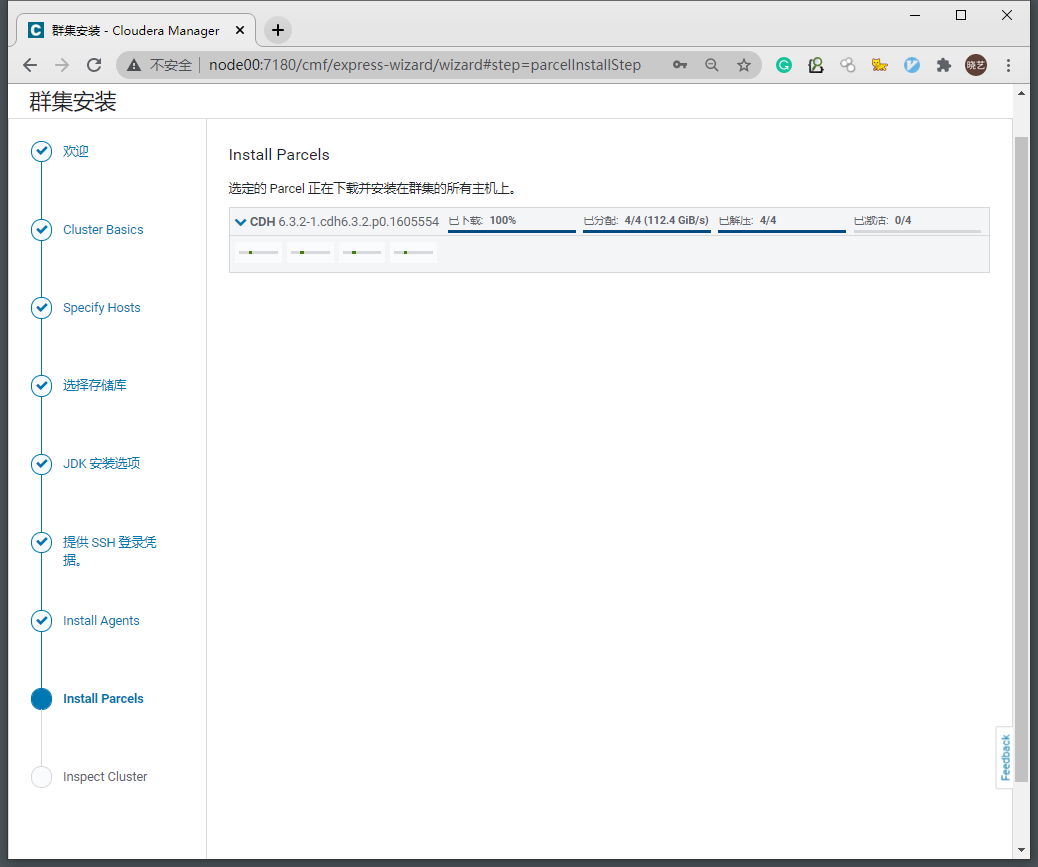 - Parcel中包含CDH所有组件的安装包,Parcel版本于CDH版本一一对应这里使用之前下载好的CDH-6.3.2-1.cdh6.3.2.p0.1605554