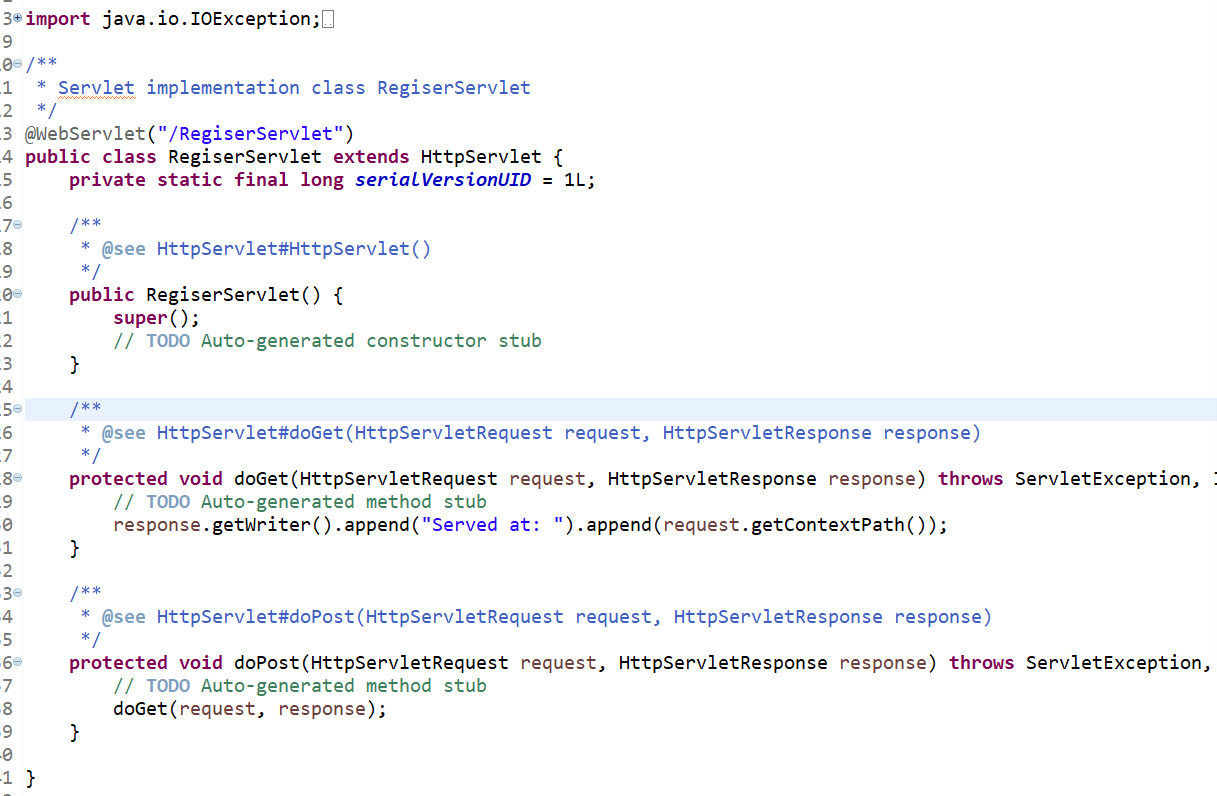 既然不是配置文件的问题,会不会是servlet的问题呢,于是我点进去,查看了 RegiserServlet,