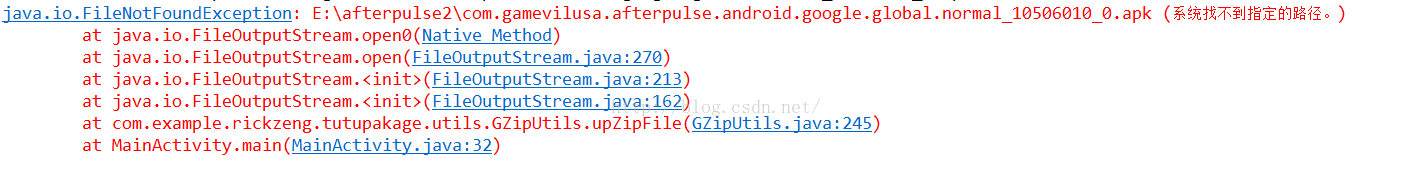 一直在显示系统找不到指定的路径,而这错误也很明显地定位到GzipUtils工具类中,自己仔细看了下,感觉没有什么问题呀,检查了n多遍也没有发现问题. 具体报错的这行代码如下所示:
