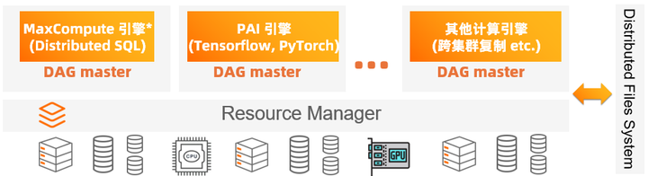 DAG 2.0作为计算平台的分布式运行基座,它的升级换代,为上层的各种计算引擎提供了更多灵活高效的执行能力,而这些能力的落地,需要通过与具体计算场景的紧密结合来实现。接下来通过2.0与上层各个计算引擎(包括MaxCompute以及PAI平台等)的一些对接场景,具体举例说明2.0新的调度执行框架,如何赋能平台上层的计算与应用。