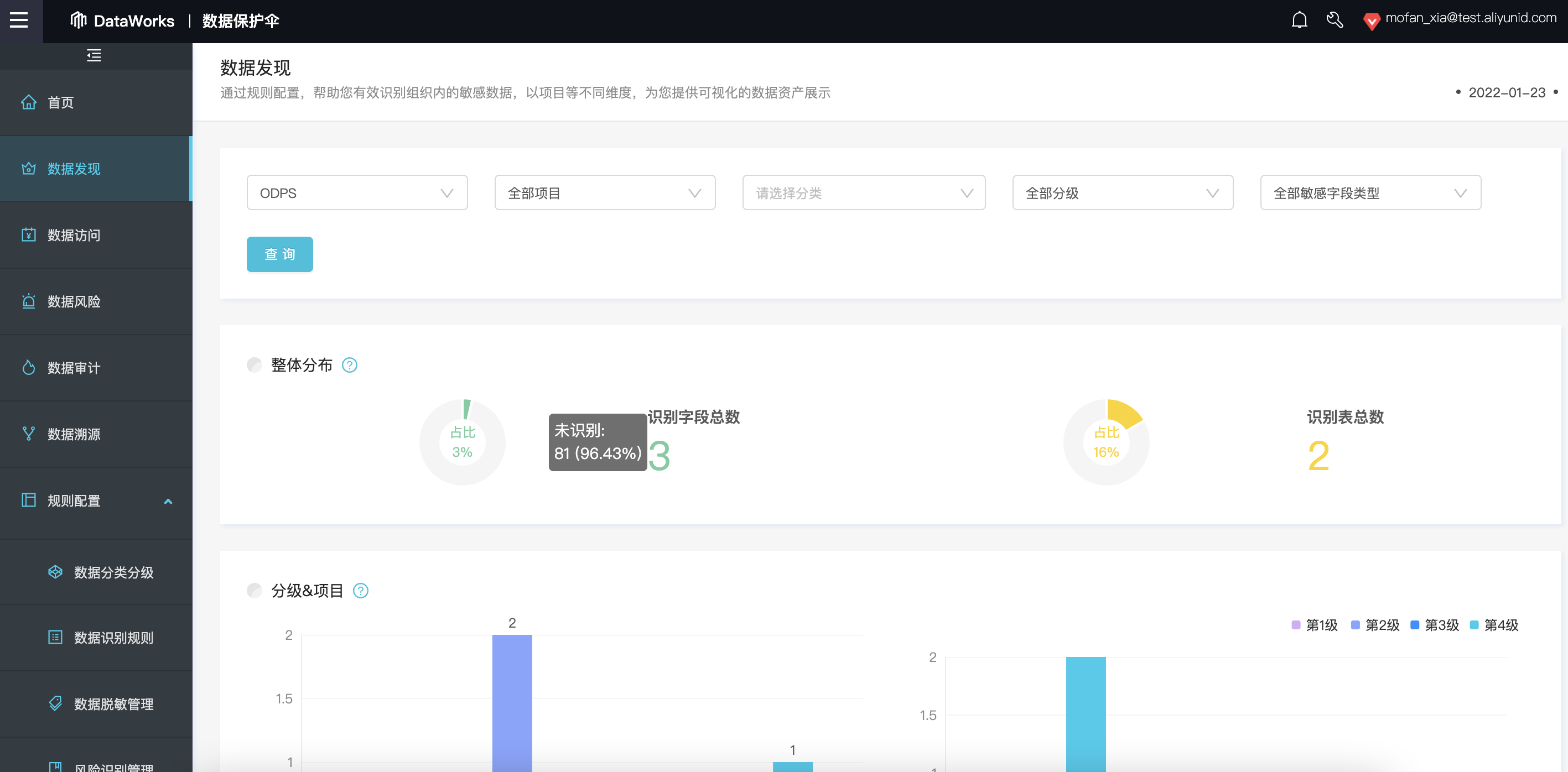 目前数据保护伞对于数据脱敏部分,支持系统自动扫描数据,并把风险统计数据显示出来。