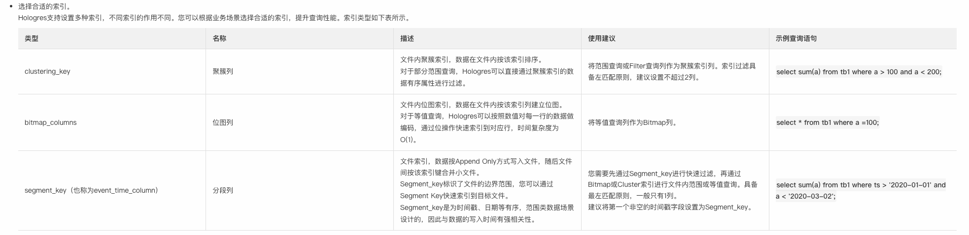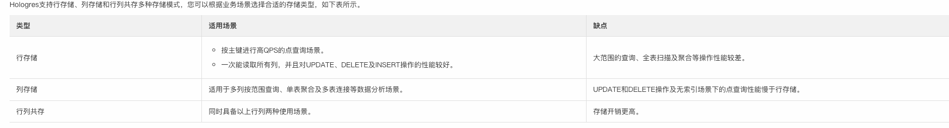 以上就是幸福衬衫最近收集整理的关于Holo 使用场景说明1:行式存储建议pk和clustering key 一致2: holo 的索引说明3:holo 使用场景的全部内容,更多相关Holo内容请搜索靠谱客的其他文章。