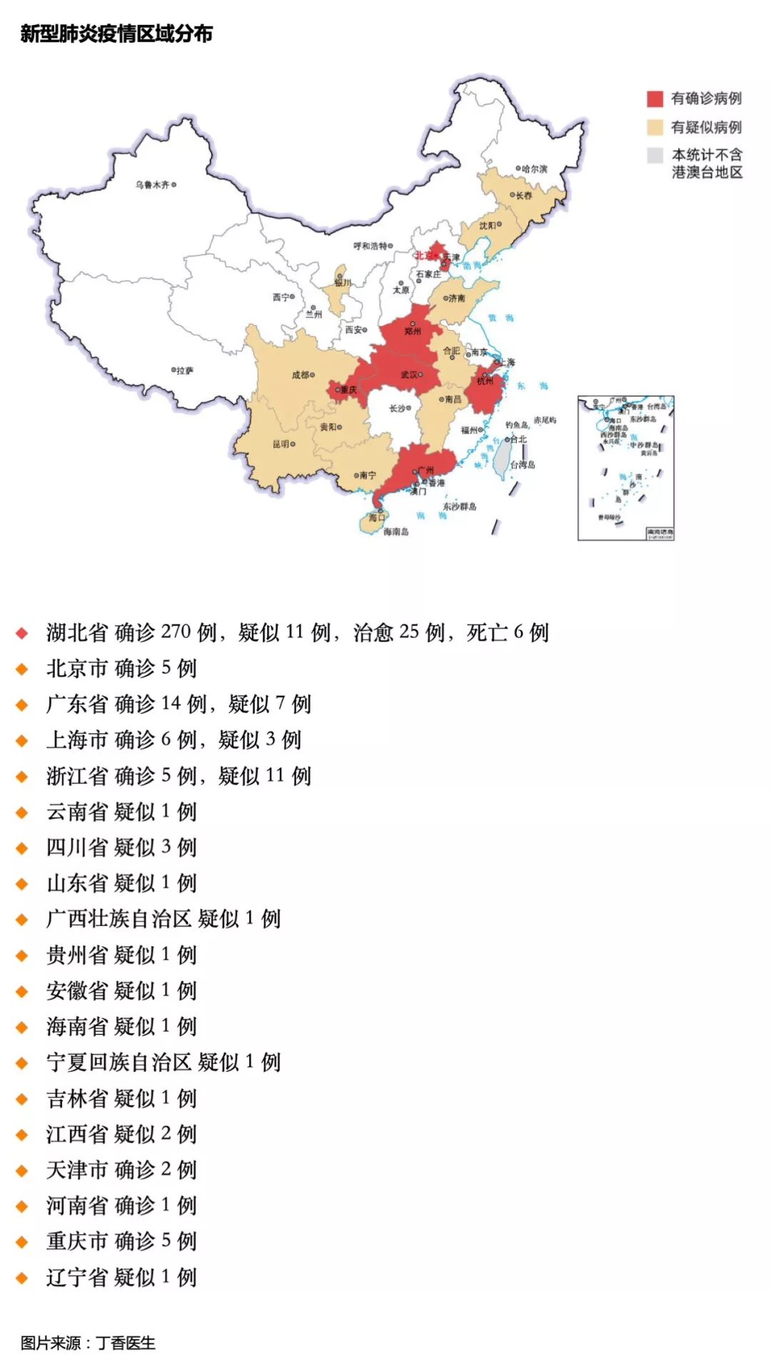 根据最新的全国新型肺炎疫情动态,我们已经了解到了疫情的主要传播存在人传人的途径,以及疫情的分布情况,如下图所示。
