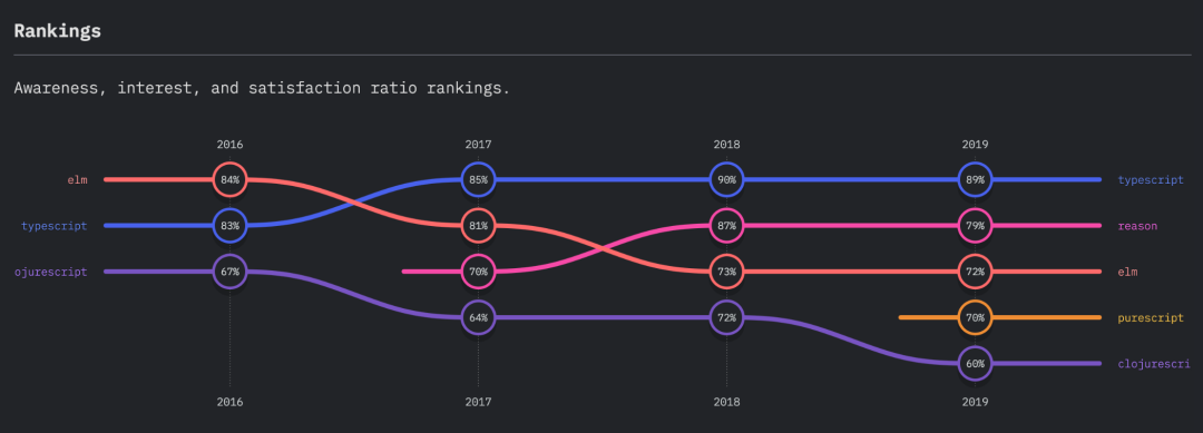 相比于同类型工具,如 Elm、ClosureScript、CoffeeScript 等,TypeScript 可谓是一马当先: