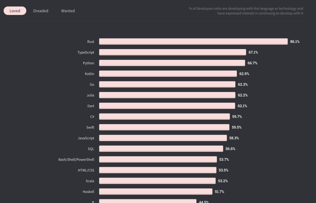 在最新的 2020Stack Overflow Survey 中,TS 受大家喜爱程度排名第二,仅次于 Rust: