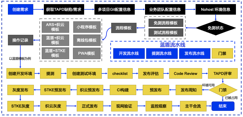 对于 DevOps 各流程的把控和规范,IMWeb 团队自研 Thanos 研发效能平台,帮助在线教育部所有前后端团队业务完成 DevOps 转型: