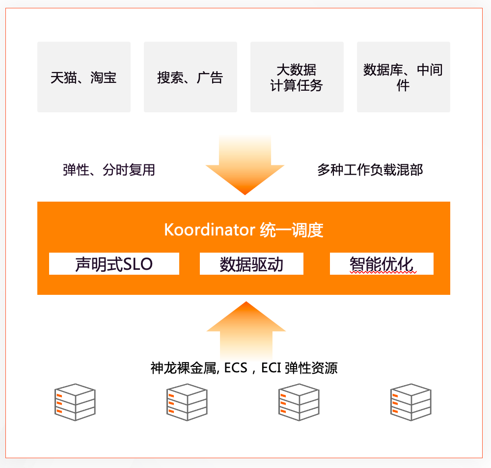 - 精细的资源编排,以满足性能及长尾时延的要求,关键点是精细化的资源调度编排策略及 QoS 感知策略