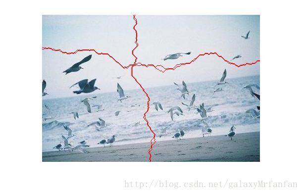 找到最后一行能量最小的点,再根据坐标找前一行与之相邻的点中能量最小的点,如此递归,当贯穿了整个图像后,即得到了裁剪线.可将已经找到的裁剪线的坐标点做个标记,以防2次找线时有重叠,导致每行像素点不齐.