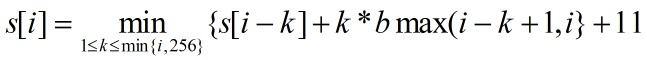 s[i] <- s[i-j] + j*bmax + header