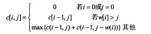 其中c(i,j)表示i个物品、容量为j的0-1背包问题的最大装包价值,最终要求解c(n,W)。