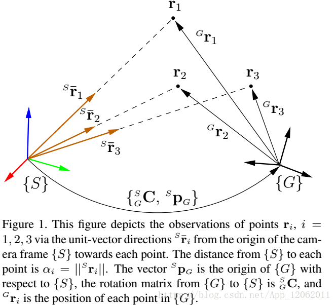 这里的定义,跟其他如AP3P是一样的,就是换了个字符,S是sensor的意思,就是相机坐标系,G还是参考坐标系。z是像素坐标系中测量点的方向向量,后面是噪声。C还是旋转矩阵,P是平移向量,下图是PnP问题最轻量化的描述。
