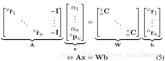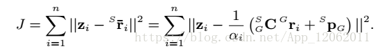 难点在于如何求解J的最小值,通常有给定一个参数的初始猜测值,然后不断迭代如(如GN算法),但这不能保证一定会获得精确值,还有利用KKT条件(SVM中的支持向量的求解算法中有用到)来求非线性系统,但是,这里难点在于位置参数过多(6+n),而本文提出的方法如下: