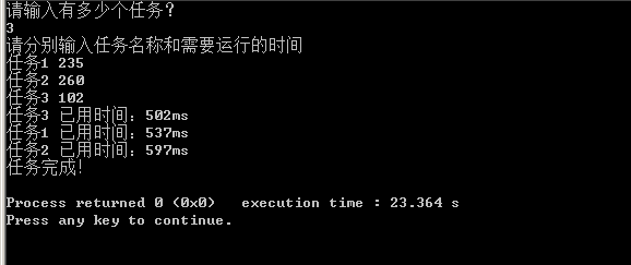 printf("请分别输入任务名称和需要运行的时间n");