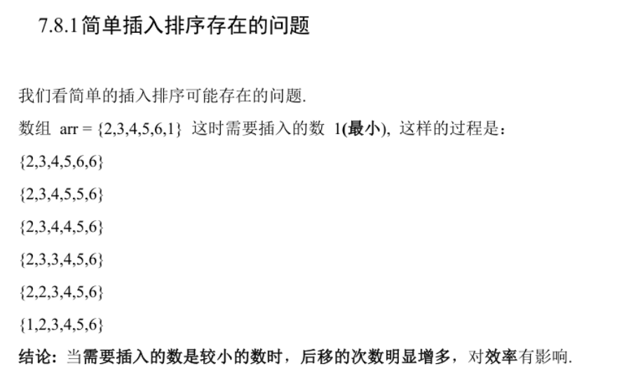 发现比插入排序效率低很多。而希尔排序本身就是用来优化插入排序的,那么上面的希尔排序将没有意义!!!所以改进一下(移位法)