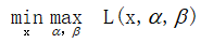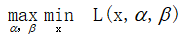 但其实是仍然个很难解决的问题,因为我们要先解决不等式约束的max问题,然后再在x上求最小值。怎么办呢?如果能把顺序换一下,先解决关于x的最小值,在解决关于α、β的不等式约束问题就好了。即,