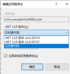 注意,还需要修改应用程序池,改为无托管代码。