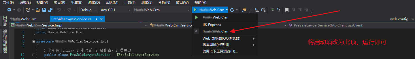 最后一步,修改vs中的启动项,运行就可以了。