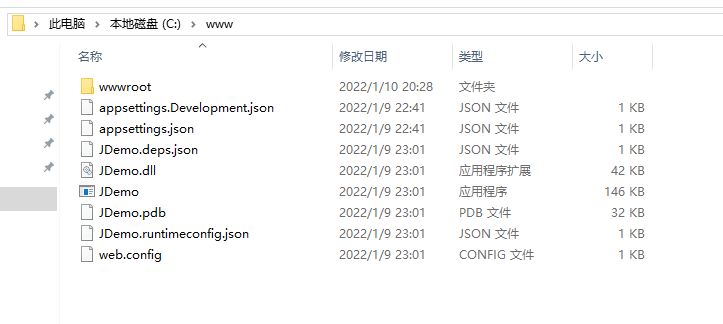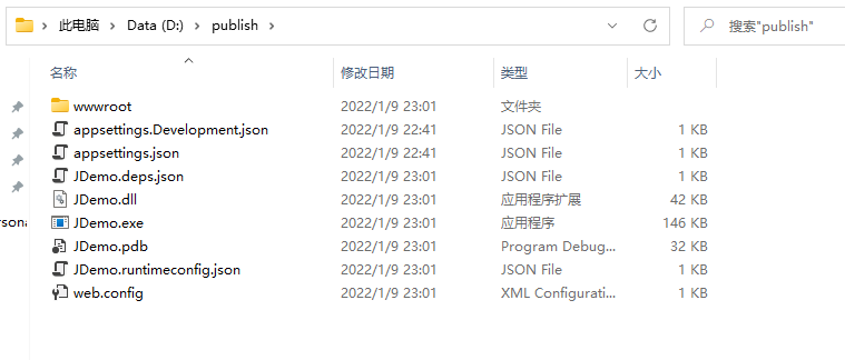 发布完成的文件夹内容如下