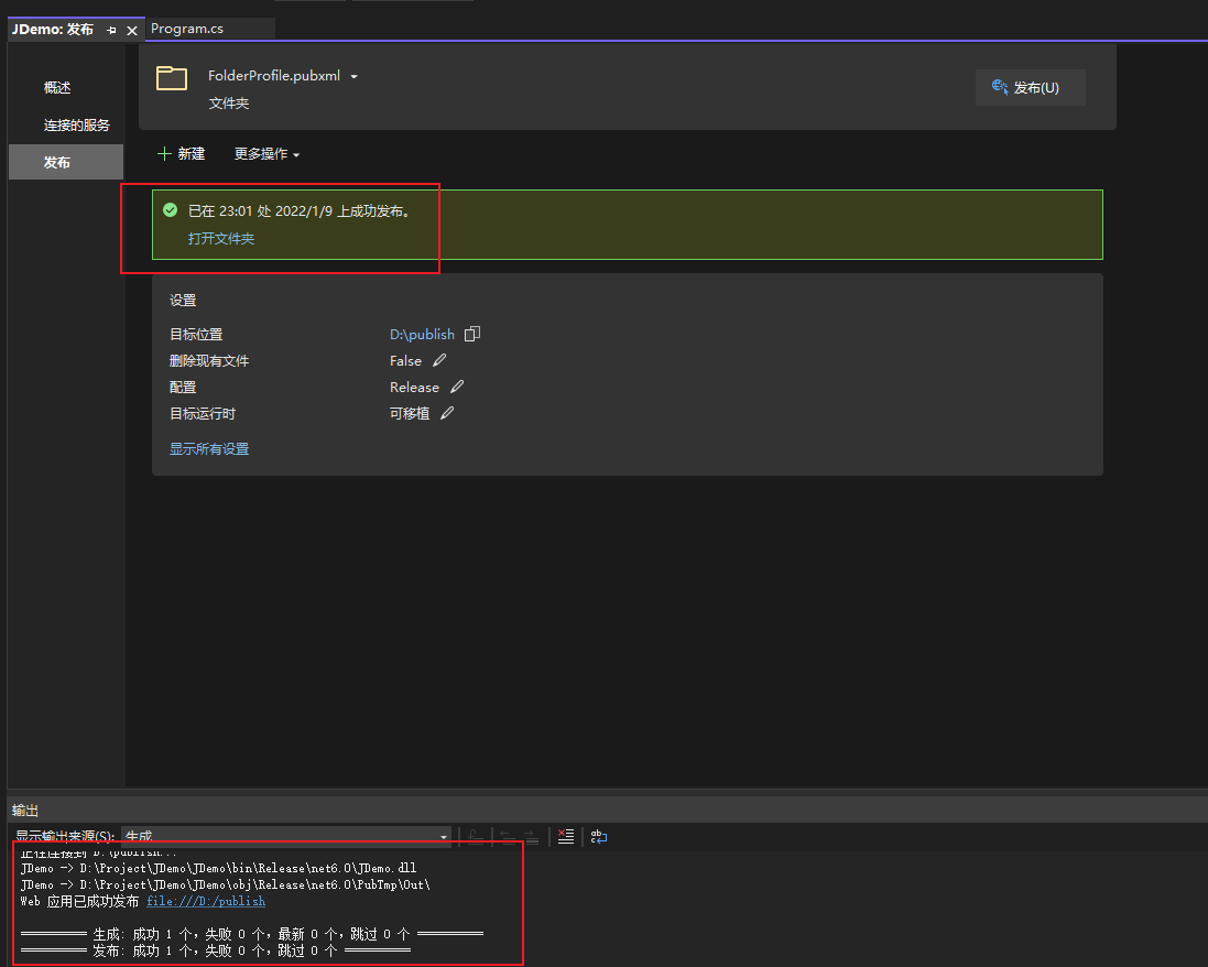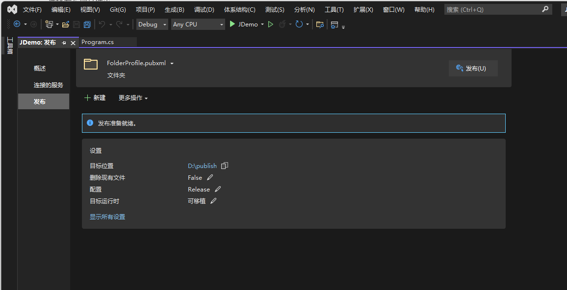 此步骤介绍将项目代码编译发布到本地文件夹,后续将此文件夹的内容部署到IIS中运行