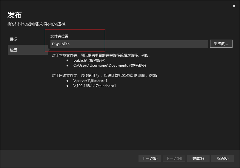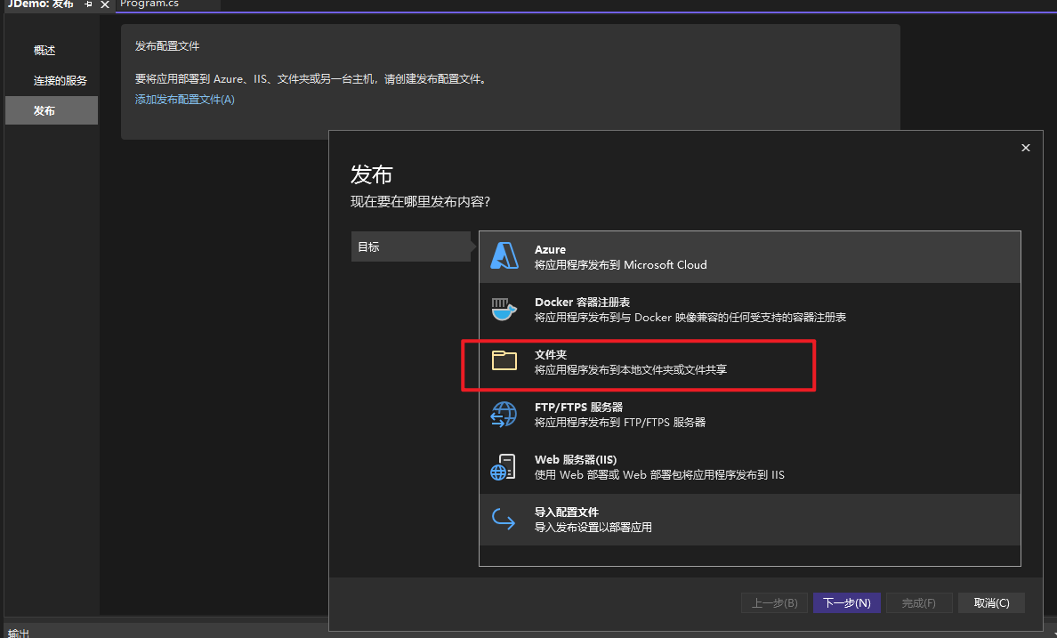 选择发布到文件夹。