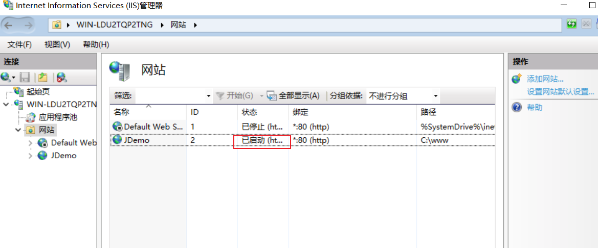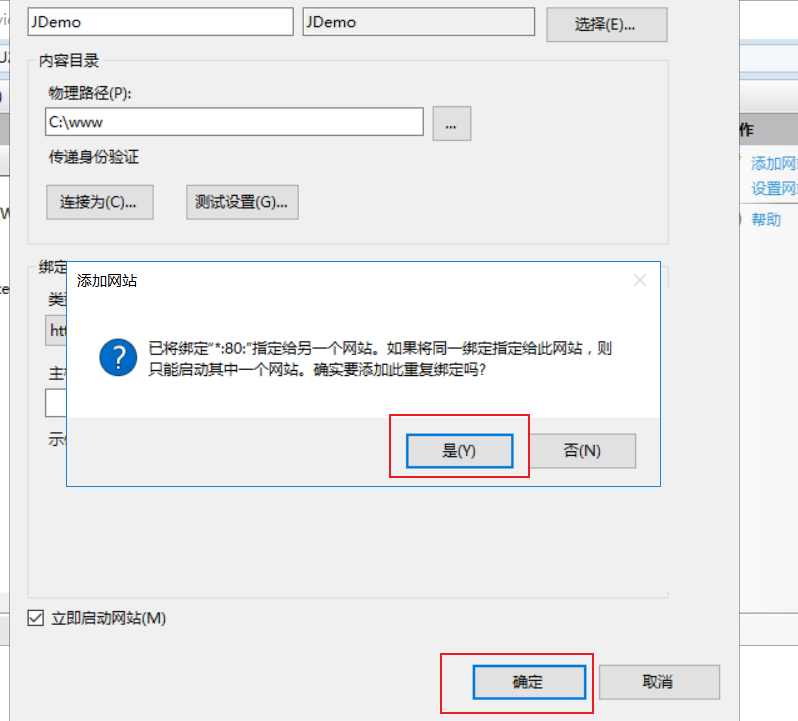 默认网站已经停止,虽然这里提示冲突,但是后续不影响访问。