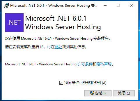 此时虽然安装好了IIS服务,但是想要运行.Net Core项目,还需要安装官方提供的Hosting安装包才可以。