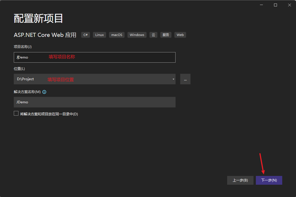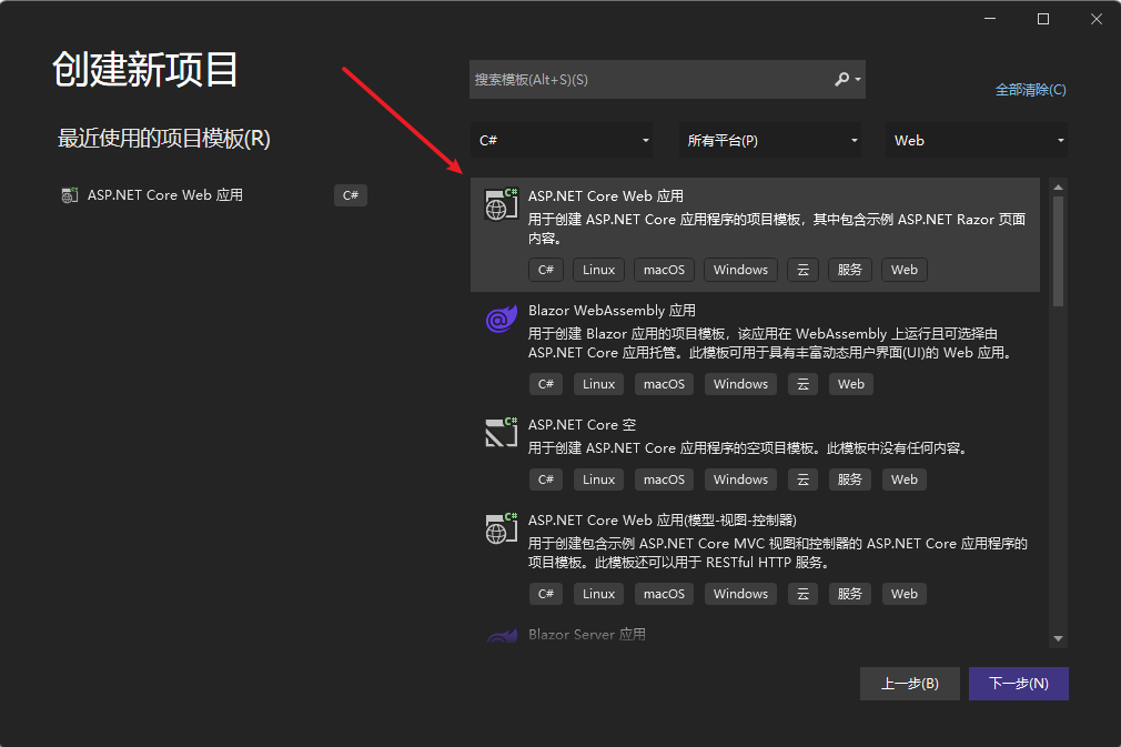 此步骤介绍在VS中如何新建一个.Net Core项目,用于部署到IIS中。