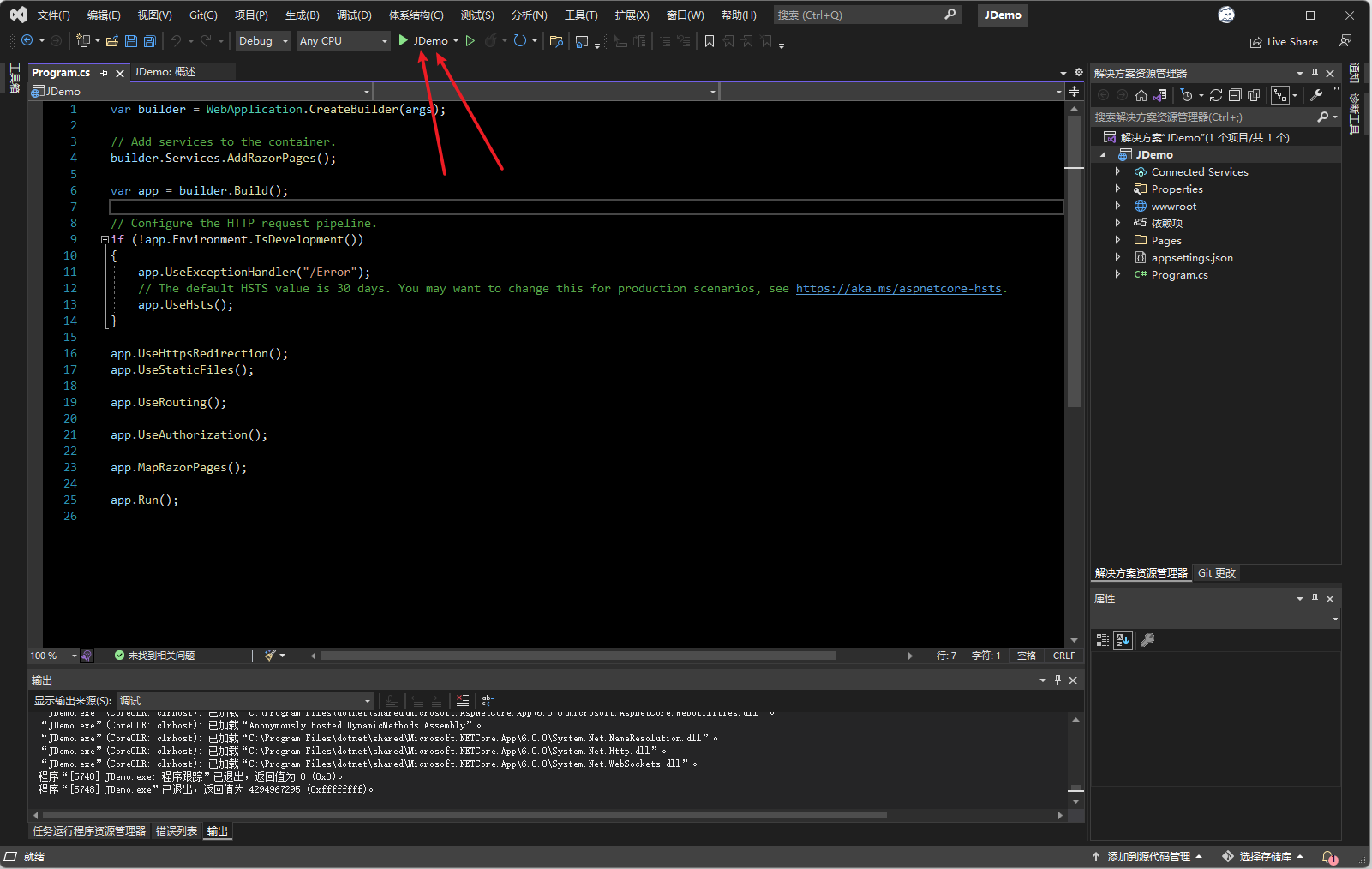 点击创建后,即可看到VS创建的默认网站模板,点击上方的运行按钮即可看到站点效果。