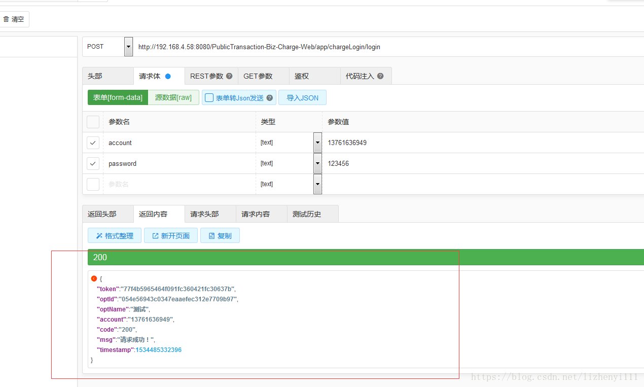 测试下项目的登录功能 成功登录 并返回数据!