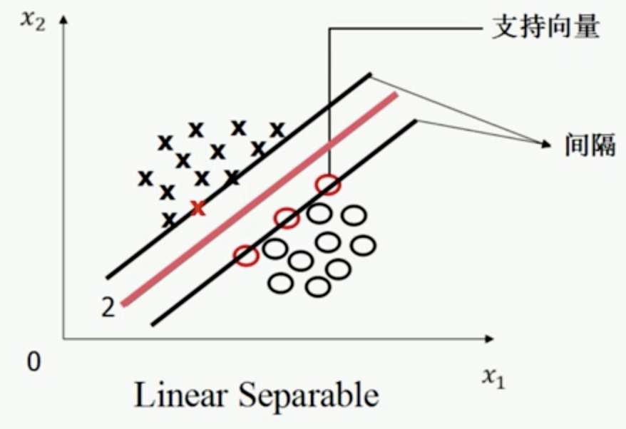 最优平面定义为:使间隔最大且处于间隔中间的分隔平面。