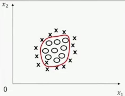 某些情况下,数据集大量样本都是线性不可分的,例如下图中都X和⭕️,无论取什么样的线性平面,分隔的情况都不理想,只有取图示椭圆的分隔面,才能把两类样本分开。