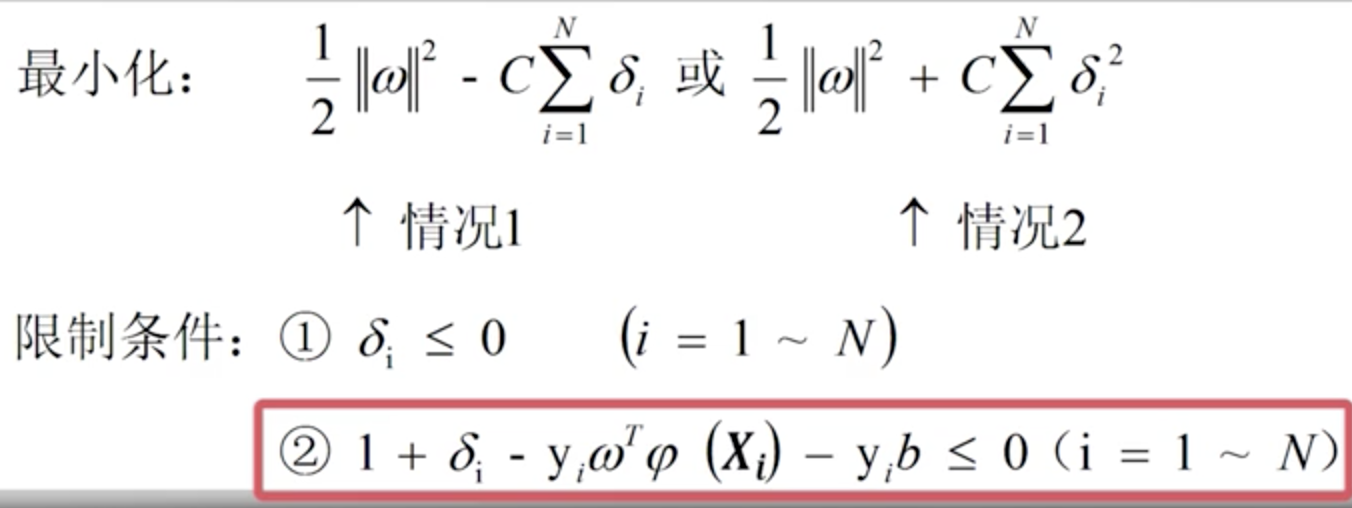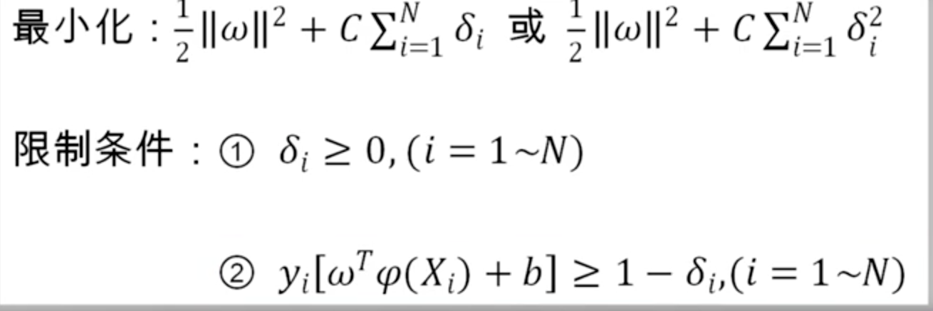 在线性不可分的条件下,限制条件无法同时满足,需要引入一个松弛变量