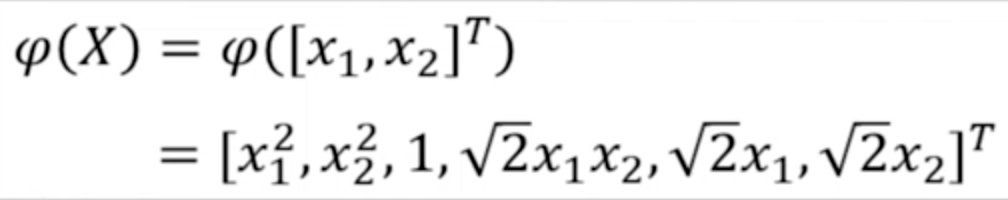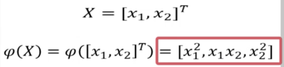 这个时候需要使用函数变换,将样本从低维变换为高维(),从而变为线性可分。这是因为: