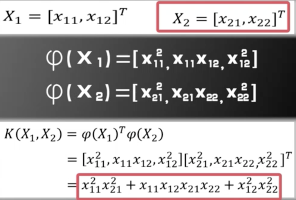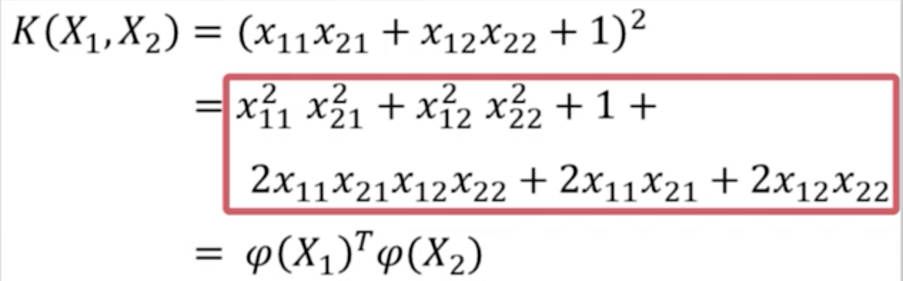 我们可以看出,即使在不知道的具体形式而只知道K(X1,X2),仍然可以对样本进行预测,这称为核函数戏法(kenel function trick)