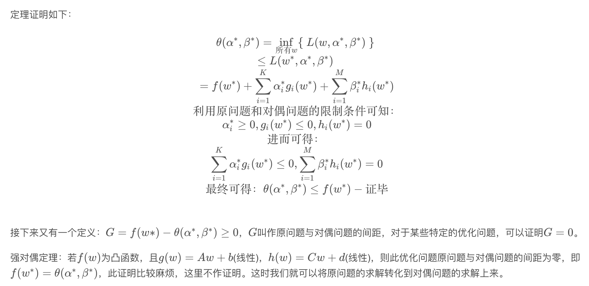 ),可以看到目标函数是凸函数,限制条件是线性函数,符合强对偶定理,原问题和对偶问题的解相等。