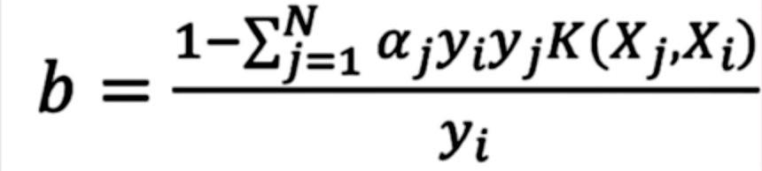 接下来如果要运用支持向量机对样本进行预测,需要求得的值,因此需要求得b的值