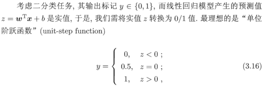 )。实际上是在用线性回归模型的预测结果,去逼近真实标记的对数几率。