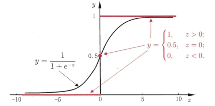 但阶跃函数不可导。一个近似替代函数就是对数几率函数: