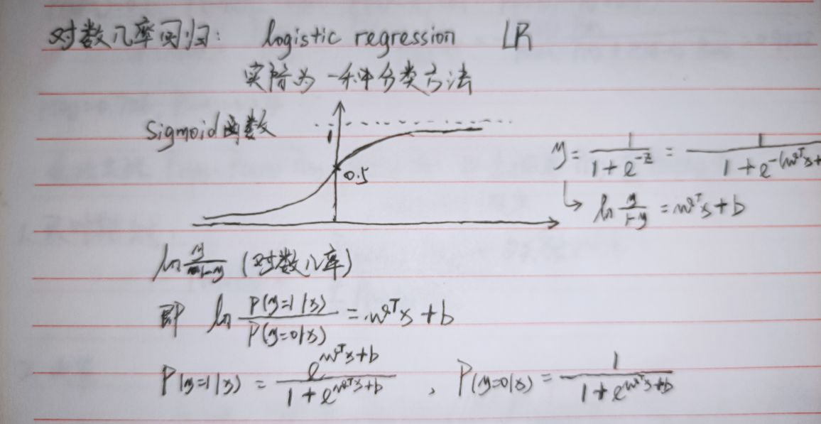 注:对数几率回归虽然它的名字是“回归”,但实际是一种分类学习方法。
