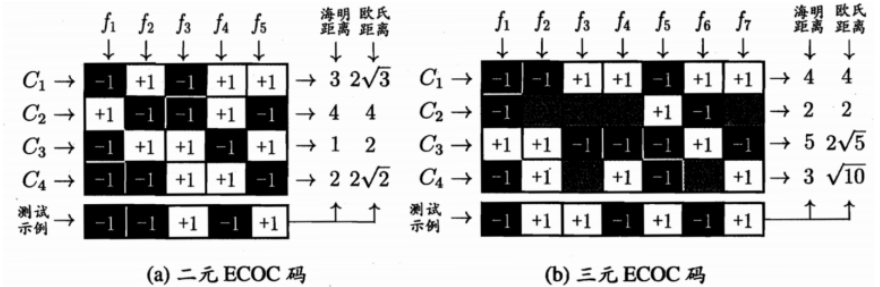 一般的,对于同一个任务,ECOC编码越长,纠错能力越强。然而编码长意味着分类器数目多了,开销增大。