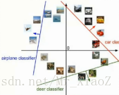 上面的例子中,有3个类别,我们可以把W的第一行+b看做是决定第一个类别的最终得分,W的第二行+b决定第二个类别的分数,以此类推,我们三个不同的W和b其实就是对于空间中进行了划分,相当于三个直线(确切说是超平面,)然后我们输入不同的x,其实就是空间中的不同区域。