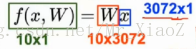 为了得到一个10*1的矩阵(向量),要配给W一个10*3072,所以10*3072 与 3072*1 相乘,得到一个10*1的列向量,就认为是一个10维的得分向量