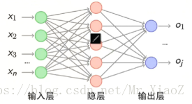 输入层输入x1,x2...xn经过1个隐藏层最后输出层输出o1,...oj