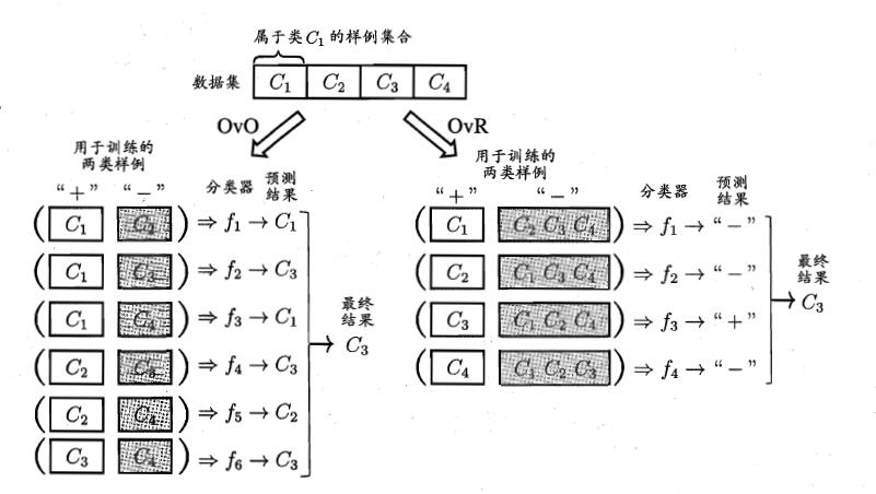 将一个多分类任务拆分为若干个二分类任务求解