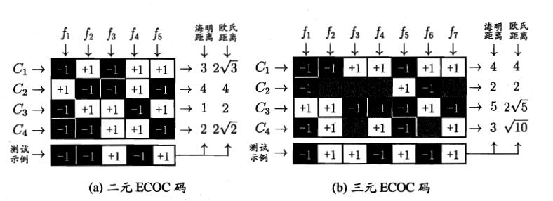 - ECOC编码对分类器错误有一定容忍和修正能力,编码越长,纠错能力越强