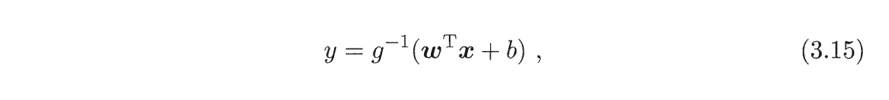 由于多元线性回归只能够学的线性函数映射不能学习非线性的模型,于是我们可以加入一个g(*)(单调可微),其基本形式: