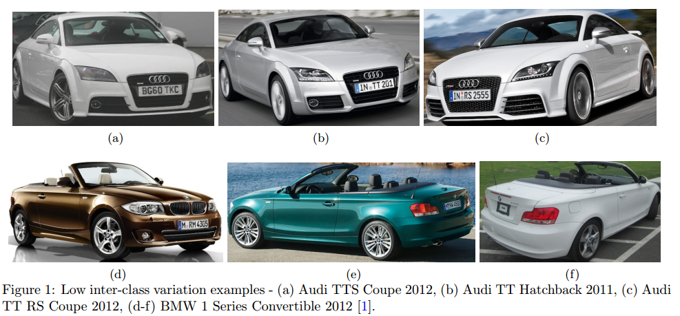 首先,细粒度车辆分类是对车辆的品牌、型号和年份进行分类的任务。这是一项非常具有挑战性的任务,因为不同类型但颜色和视角相似的车辆通常比相同类型但颜色和视角不同的车辆看起来更相似 (类间很相似,类内差距大)。车辆品牌。型号,年份以及颜色在诸如车辆检索,车辆再识别,车辆跟踪及交通分析等应用中具有重要作用。