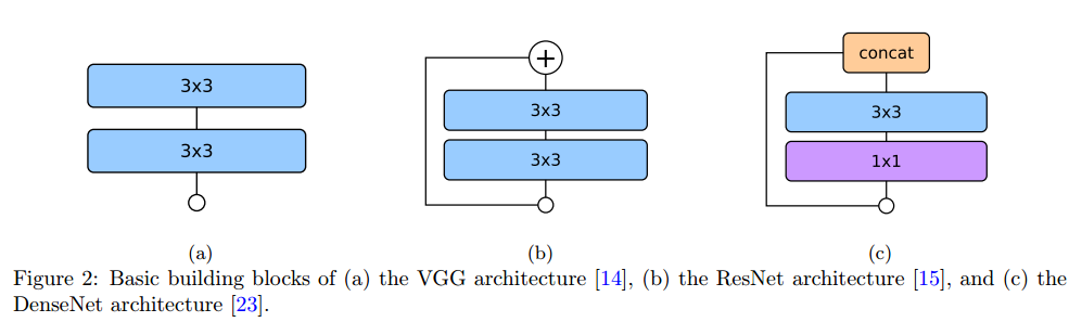 同样使用残差连接,在每一个block中,DenseNet将每一个卷积输出与后续的每一层输入进行连接,并将特征加操作换成了concat操作,此操作一定程度上可以保存用来concat的各层特征的独立信息。由于过多卷积输出特征的堆叠(concat),会产生大量的参数。因此采用1x1卷积核作为bottleneck进行特征通道缩减。减少了参数量并提高了计算效率。