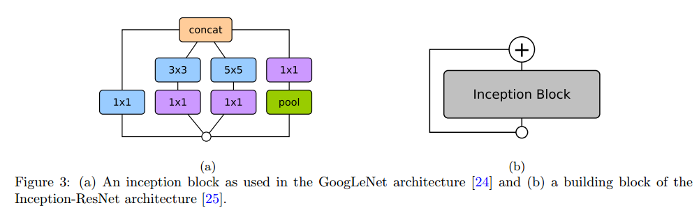 基于inception的模型起源于GoogLeNet,GoogLeNet模型不同于其他传统的顺序地堆叠卷积与池化操作的单路网络,首席使用具有多分支的Inception模块,Inception模块的结果是1x1,3x3,5x5等多个分支特征的concat,每个分支会产生不同的特征感受野。这种对模块输入进行多分支多尺度操作的思想,可以恢复局部特征(小卷积核)与全局上下文特征(大卷积核)。