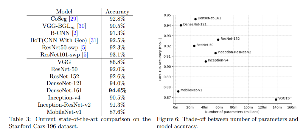 本文的工作主要是研究了几种在大规模图像分类任务中表现强悍的标志性卷积神经网络对于车辆细粒度分类的适应性。主要是对比了VGG16,各种形式的ResNet,Inception,DenseNet以及MobileNet网络架构的性能。探究了CNN训练的几个层面,如数据增强、从头训练或者微调网络。重要的是,本文并没有介绍特定于车辆分类的网络架构或者训练过程。